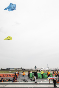 Face-à-face d'objets volants : conception et fabrication de cerf-volants pour une action militante contre le plan de relance du gouvernement à destination du secteur aérien. Nous sommes tous extrêmement VULNÉRABLES face aux bouleversements causés par la crise climatique, il est urgent de TOUT repenser dès maintenant.