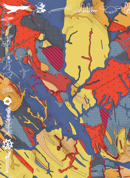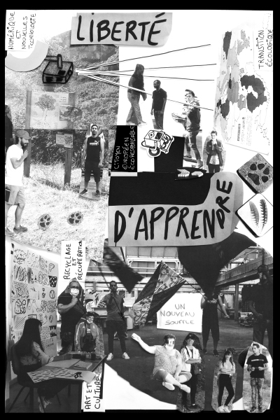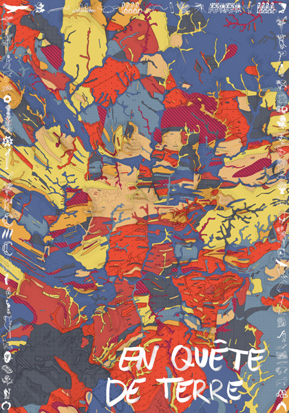 Travail collectif avec reprise de terre pour aboutir à un visuel retraçant l'enquête du groupe pour leur parution en tant que rédacteurs invités de la revue Socialter.