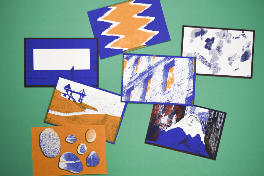 Série de cartes postales pédagogiques pour l'exposition Entre les algues. Recherches personnelles. Impression en riso.