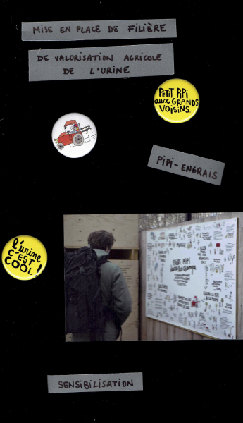 Louise Raguet est une collègue de l'Assemblée des Noues. Elle est biologiste et designer produit et a conçu un urinoir féminin permettant de recycler l'urine et fertilisant agricole. Nous dessinons ensemble l'identité de son urinoir en partant de la signalétique de l'objet in situ et des consignes d'utilisation de l'objet.