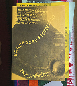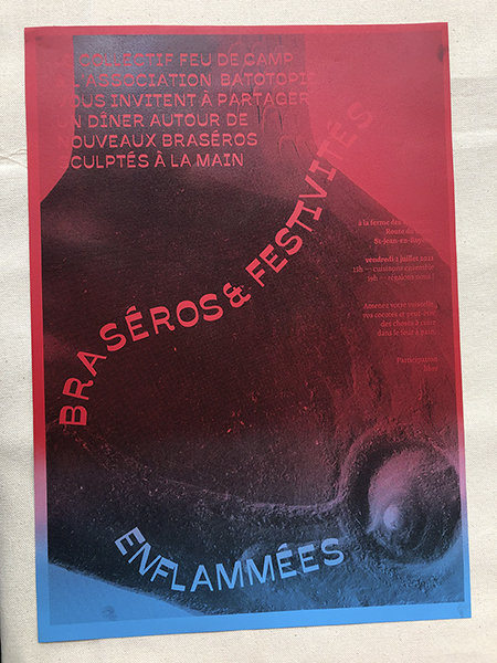 Faire une affiche en une heure pour inviter à venir faire cuire des mets sur un braséro qu'on aurait sculpté ensemble ? C'est parti !