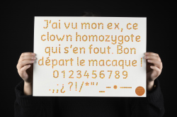 Caractère dessiné pour créer des moules à béton comprenant des inserts de typographie.