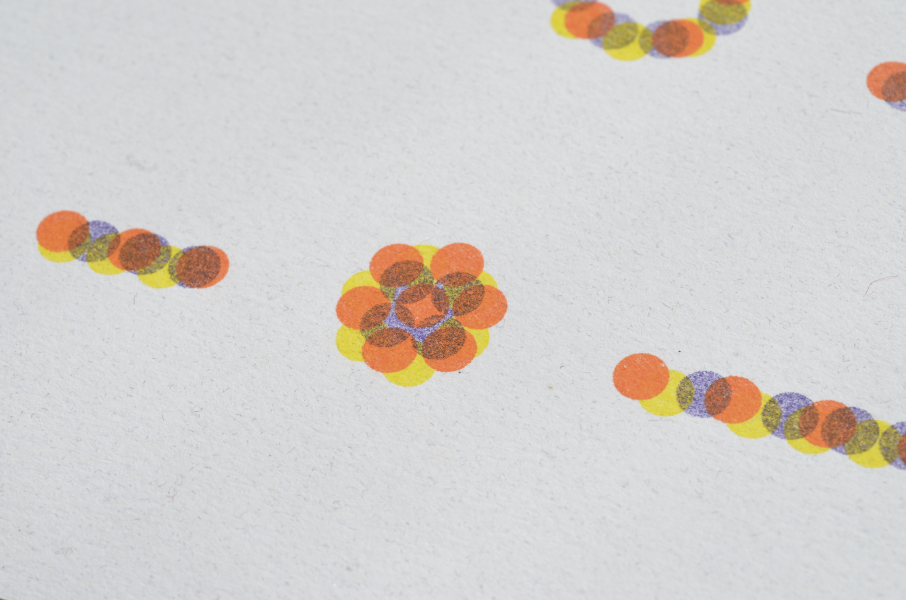 Dessin de caractères typographiques pour des impressions multicolores en points inspirées de photogrammes. Specimen imprimé en risographie.