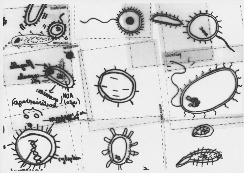 Suite au repas microbes, un atelier est mené avec les enfant du centre social La Paz (Saint-Jean-enRoyans) pour faire des fanzines sur la vie des microbes. Projet mené avec Chloé Adelheim au nom de l'assemblée des Noues.