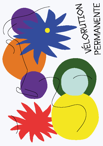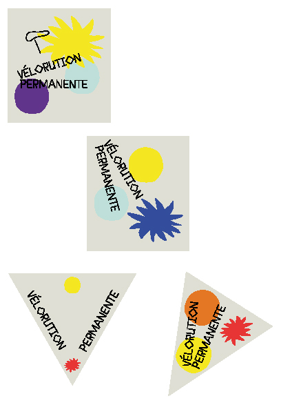 Recherches graphiques pour visuels de vélorution, à destination des possibilités de fabrication de drapeaux. Dans le Royans, peu de possibilité de se déplacer en vélo en sécurité. Un groupe d'habitants se moilise pour faire des demandes aux mairies et au département.