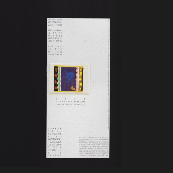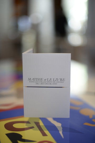 Matisse et le Livre dans les collections de l'EnsAD : invitation postales et numériques, livret d'exposition, signalétique extérieure.